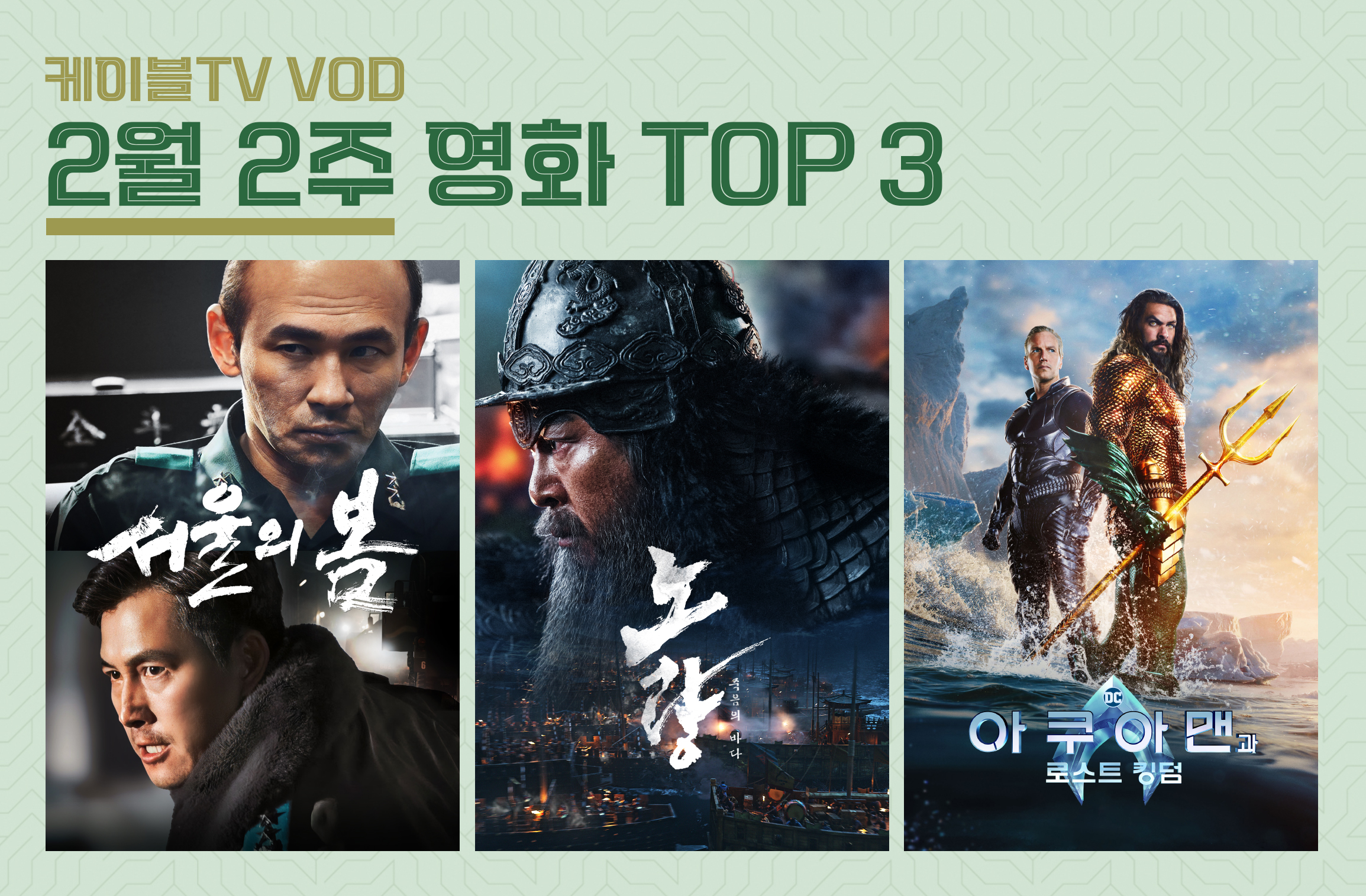 한 주를 뜨겁게 달군 세 편의 영화 모두 LG헬로비전, SKB알뜰딜라이브, HCN, CMB 등 전국 케이블TV에서 VOD로 만나볼 수 있다. <>