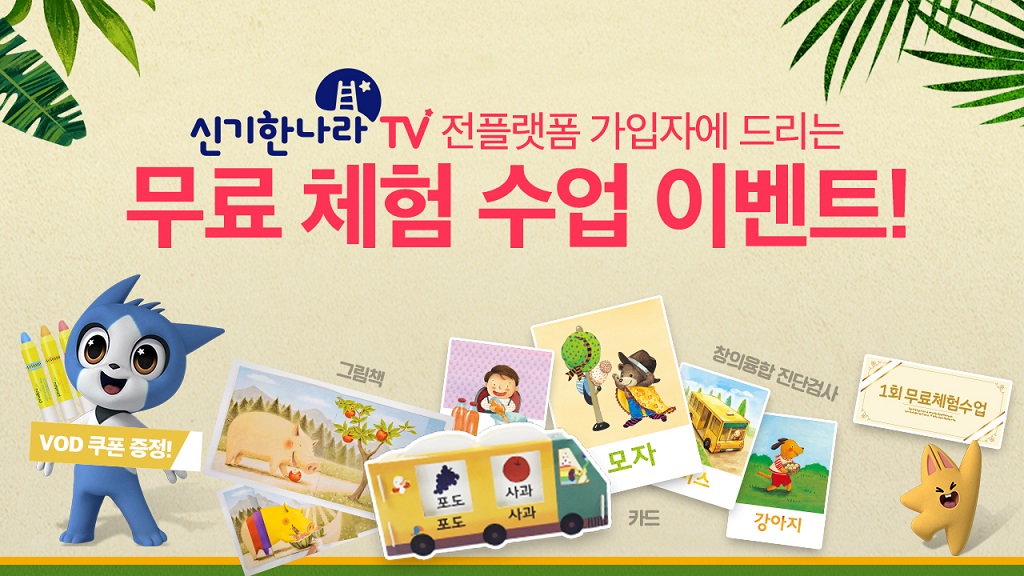 신기한나라TV는 이벤트 기간 동안 아이의 성장 발달 수준을 진단하고 그 결과를 기반으로 교육 및 양육 방향을 제안하는 창의 융합 진단 검사 기회를 무료로 제공한다. 신기한 한글나라수업 1회 무료 체험 혜택을 제공한다. 수업 체험 시 그림책, 카드, 스티커 등도 받을 수 있다.