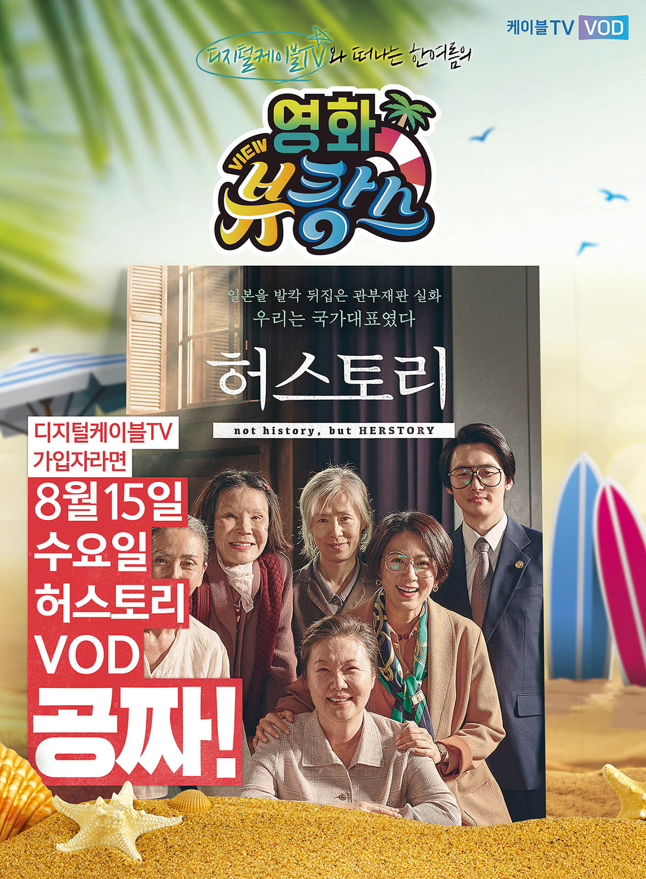 이영환 홈초이스 미디어사업국 국장은 올해 8·15 광복절을 기념해 디지털케이블TV 고객들과 역사의 의미를 되새기고자 영화 뷰캉스이벤트 세 번째 작품으로 <허스토리>를 선보이게 됐다, “케이블TV VOD는 디지털케이블TV 고객들을 위해 의미 있는 영화를 지속적으로 제공해나갈 것이라고 말했다.