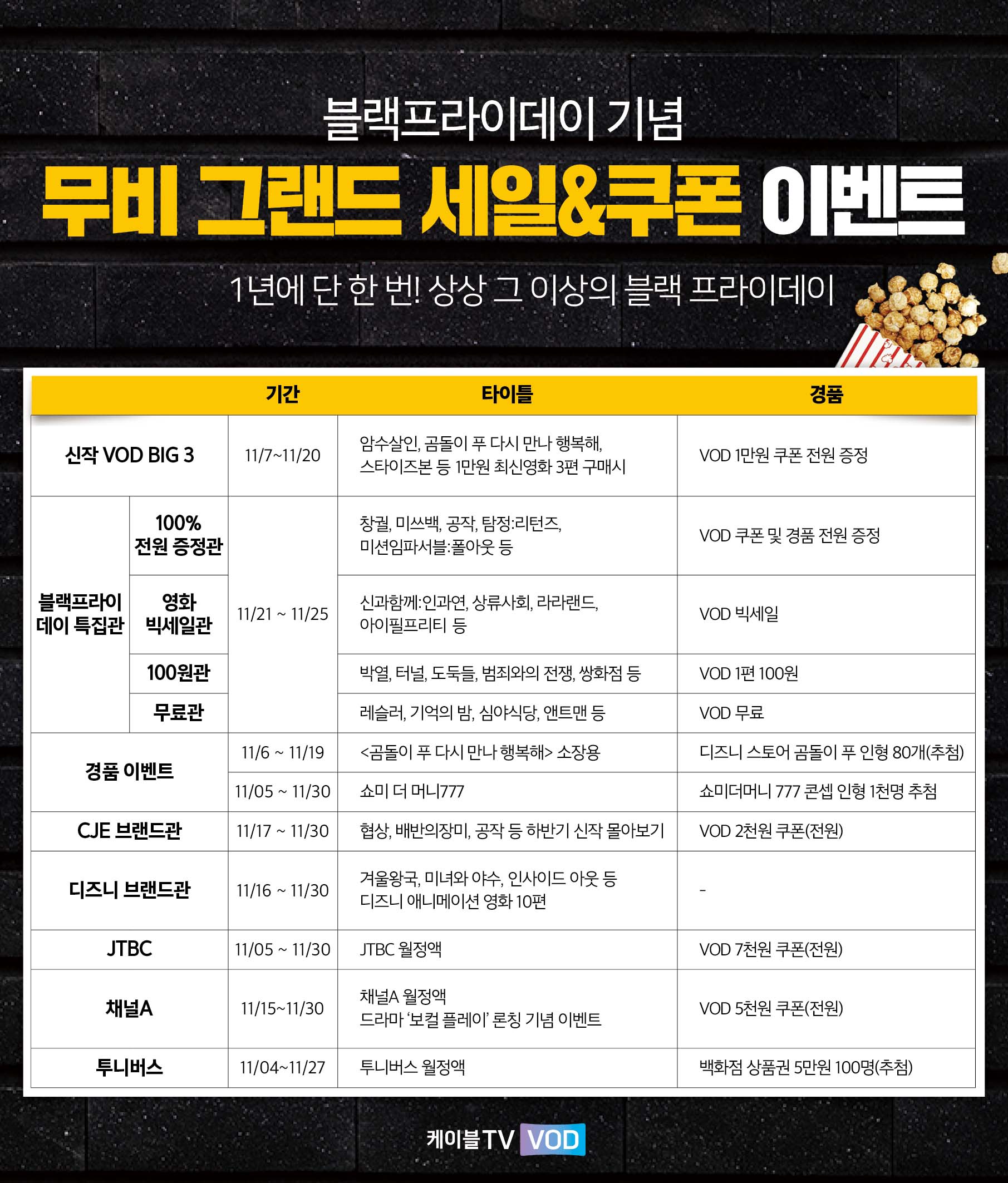 케이블TV VOD, 블랙프라이데이 맞이 무비 그랜드 세일&쿠폰이벤트