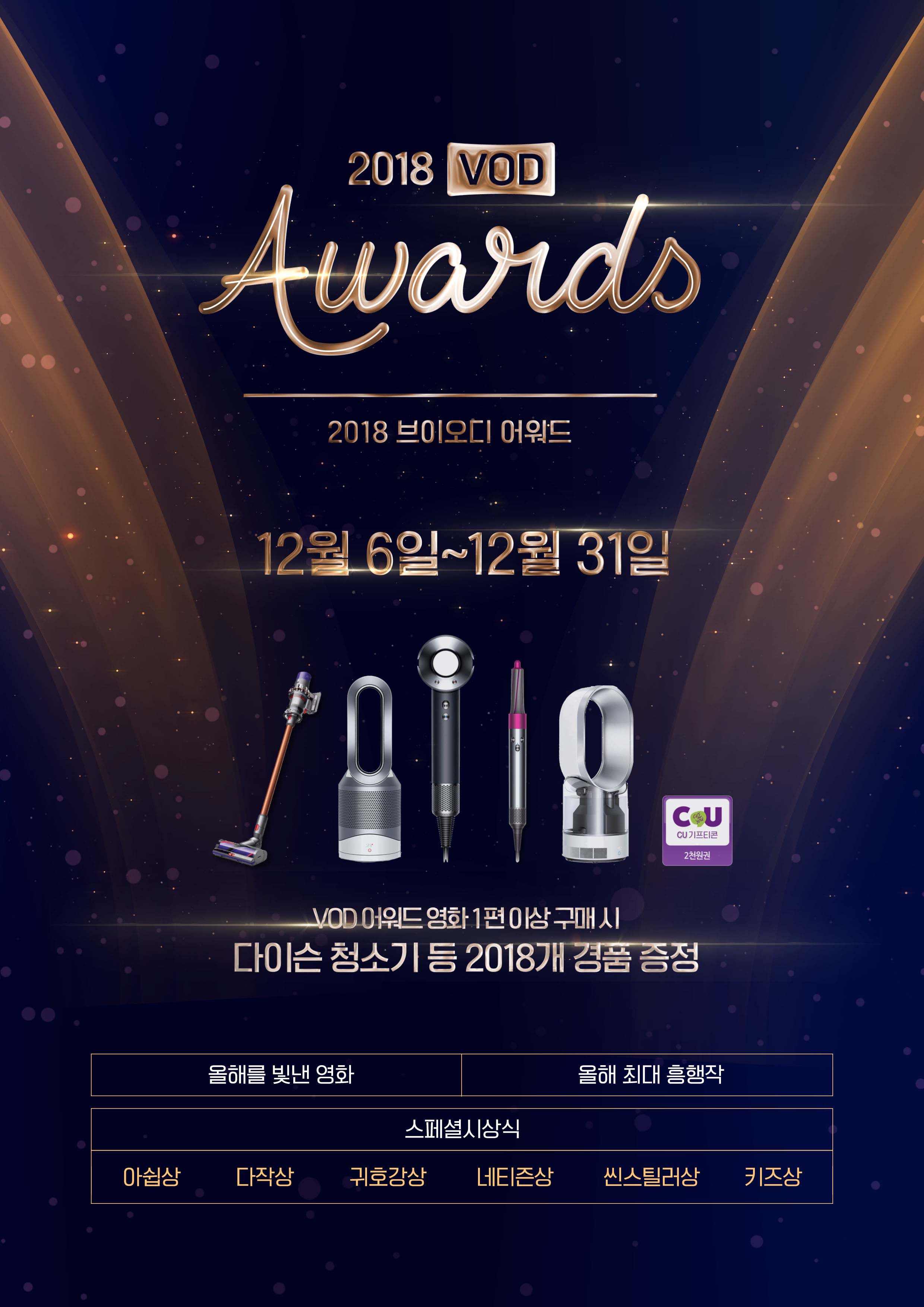 l 6일부터 31일까지 ‘2018 VOD 어워드’ 작품 구매한 2018명 추첨 다이슨 등 경품 증정