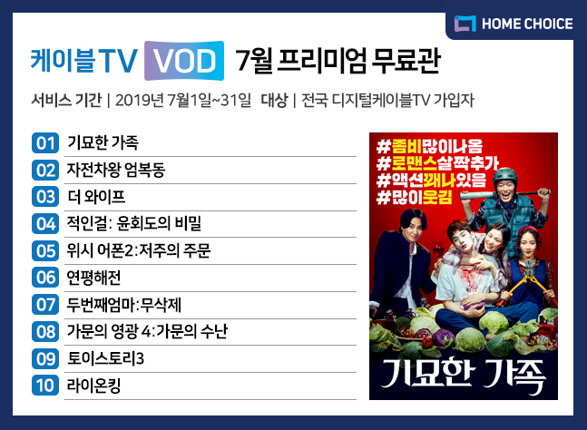 케이블TV VOD, 7월 ‘기묘한 가족’, ‘토이 스토리’, ‘라이온 킹’ 무료