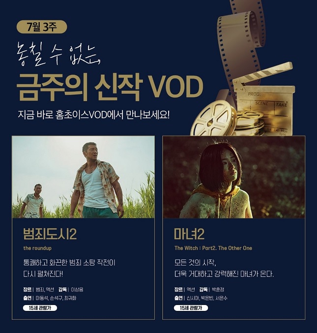 ㈜홈초이스(총괄 전윤수)18범죄도시 2’마녀 2’ 등 신작 영화 VOD 2편을 추천했다.